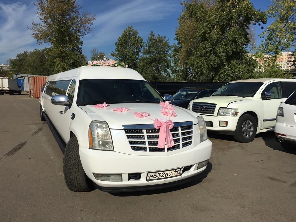 Лимузин Cadillac Escalade – это представительное транспортное средство, незаменимое на свадьбе или во время прогулки по городу. Прокат такой машины превосходно создает настроение праздника.