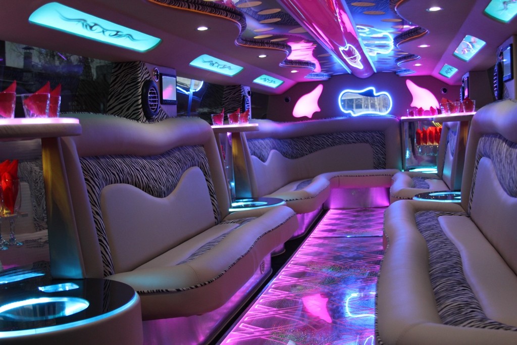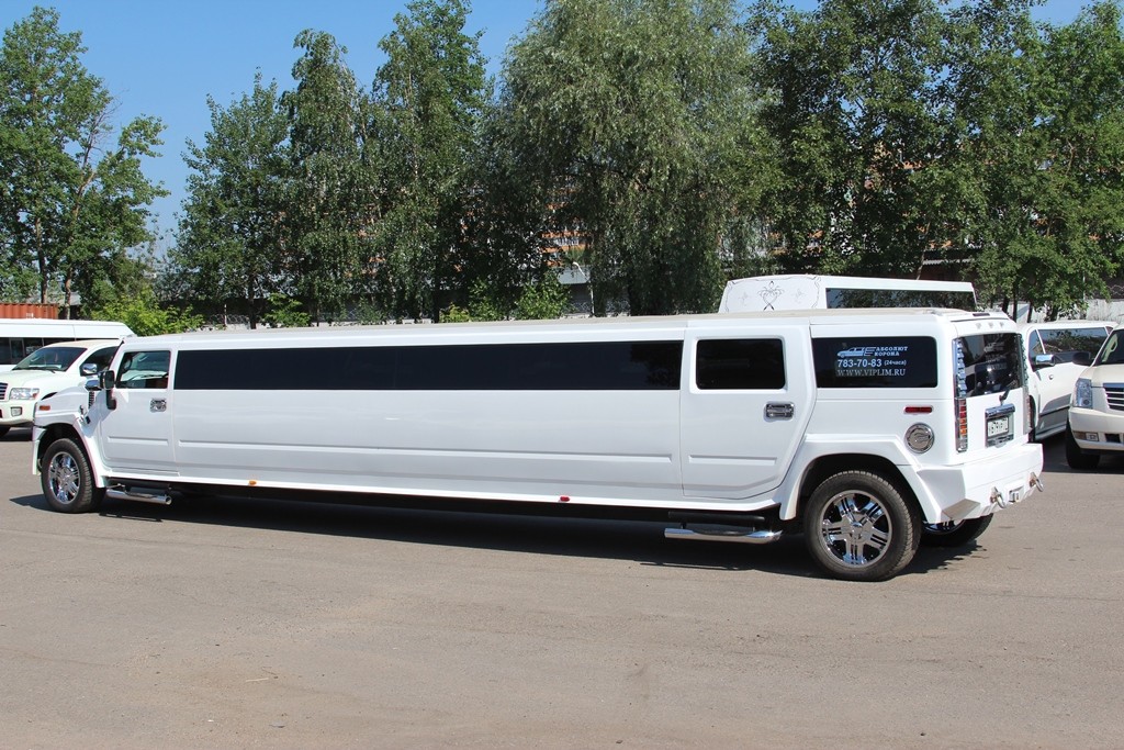 Устроить яркое запоминающееся мероприятие поможет прокат Hummer H2, белого лимузина с вместимостью на 22 персоны. Дизайн салона выполнен в стиле «Сафари» из светло-бежевой кожи с полосатым узором, имитирующим окрас зебры. Дополнительно предусмотрена неоновая подсветка для создания особой атмосферы.
